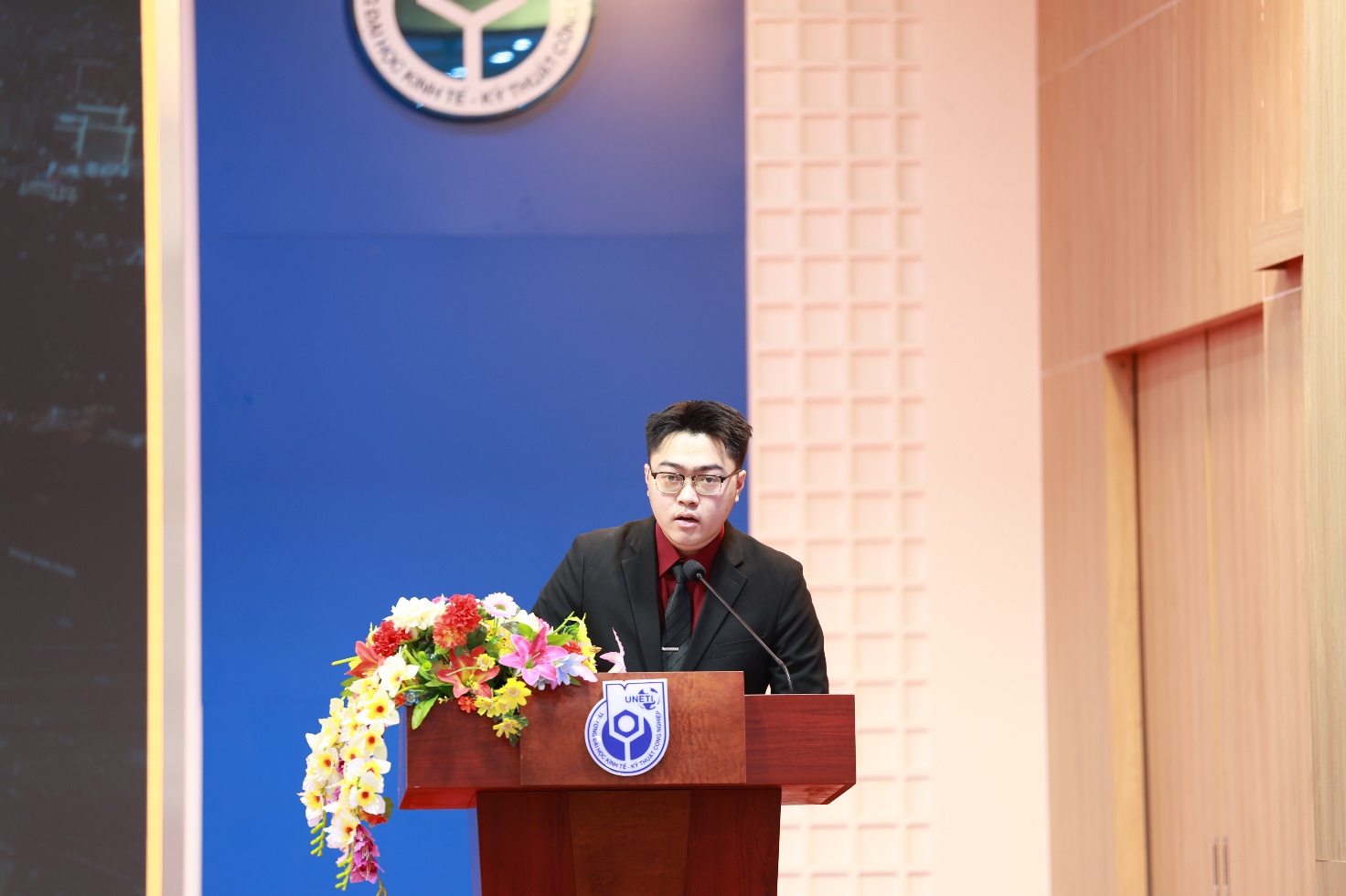 Phát biểu khai mạc hội thảo, PGS.TS. Nguyễn Hữu Quang – Thường vụ Đảng uỷ – Phó Hiệu trưởng trường Đại học Kinh tế – Kỹ thuật Công nghiệp gửi lời cảm ơn và nhấn mạnh ý nghĩa của Hội thảo trong bối cảnh phát triển Công nghệ thông tin hiện nay. Được đăng cai tổ chức VNICT 2025 là vinh dự lớn của trường Đại học kinh tế – Kỹ thuật Công nghiệp, đây không chỉ là dịp để nhà trường đóng góp vào sự kiện có ý nghĩa học thuật sâu sắc mà còn là cơ hội để Uneti được học hỏi, được giao lưu học tập, trao đổi văn hóa, mở rộng liên kết với tất cả các công ty đối tác và được giới thiệu rộng rãi với tất cả các hội đồng khoa học trong cả nước. Uneti được định hướng là trường đại học ứng dụng hoạt động theo cơ chế tự chủ toàn diện, đào tạo đa ngành trong đó có nhiều lĩnh vực đã trở thành thế mạnh và thương hiệu của nhà trường.Thầy tin rằng những bài tham luận chất lượng, những đề xuất khoa học khả thi, những trao đổi cởi mở trong buổi hội thảo sẽ góp phần đưa ra nhiều giải pháp thiết thực, đóng góp cho sự phát triển khoa học công nghệ của đất nước.